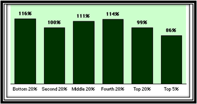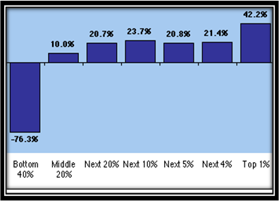 Then, Change in Average Household Net Worth, 1983-1998: