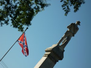 After thanking the man for his kind gift, I had a quesstion. “I’ve seen lots of civil war memorials in the South,” I said, “but I don’t think I have ever seen the stars and bars flying in front of a courthouse. What’s the meaning of that?”