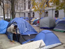 Now comes the big challenge; preparing for the onslaught of winter. “We’ve got that covered,” Mike tells me. “We’ve got people working on tents that are 100% insulated. People are already wearing four layers of clothing in Philly and it’s only November. Occupy Philly hasn’t had a lot of press, largely because local law enforcement has been very open and flexible and political officials drop by occasionally to chat.