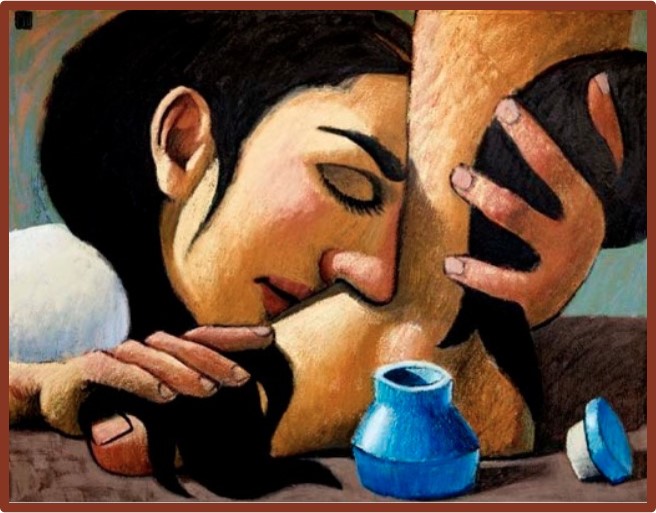 Meanwhile, Jesus is in Bethany, reclining at supper in the home of Simon the leper. A woman bursts onto the scene with an alabaster jar of expensive perfume. In seconds, the sweet ointment is running down his face, dripping onto his robes and puddling on the floor.