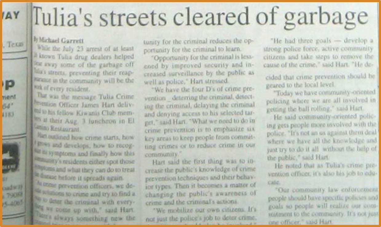 The headline in the local paper summed up the general attitude: “Tulia’s streets cleared of garbage.”