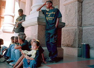 Friends of Justice organized dozens of trips to Washington DC, New York City, giving family members of the defendants a chance to tell their story. Every few weeks, a dozen of us were heading down to the Texas Legislature in support of reform legislation. On one occasion, we rented a bus and took fifty family members and their children to Austin. A year after the sting, twenty drug war orphans stood on the steps of the Legislature and sang “the eyes of Texas are upon you.”