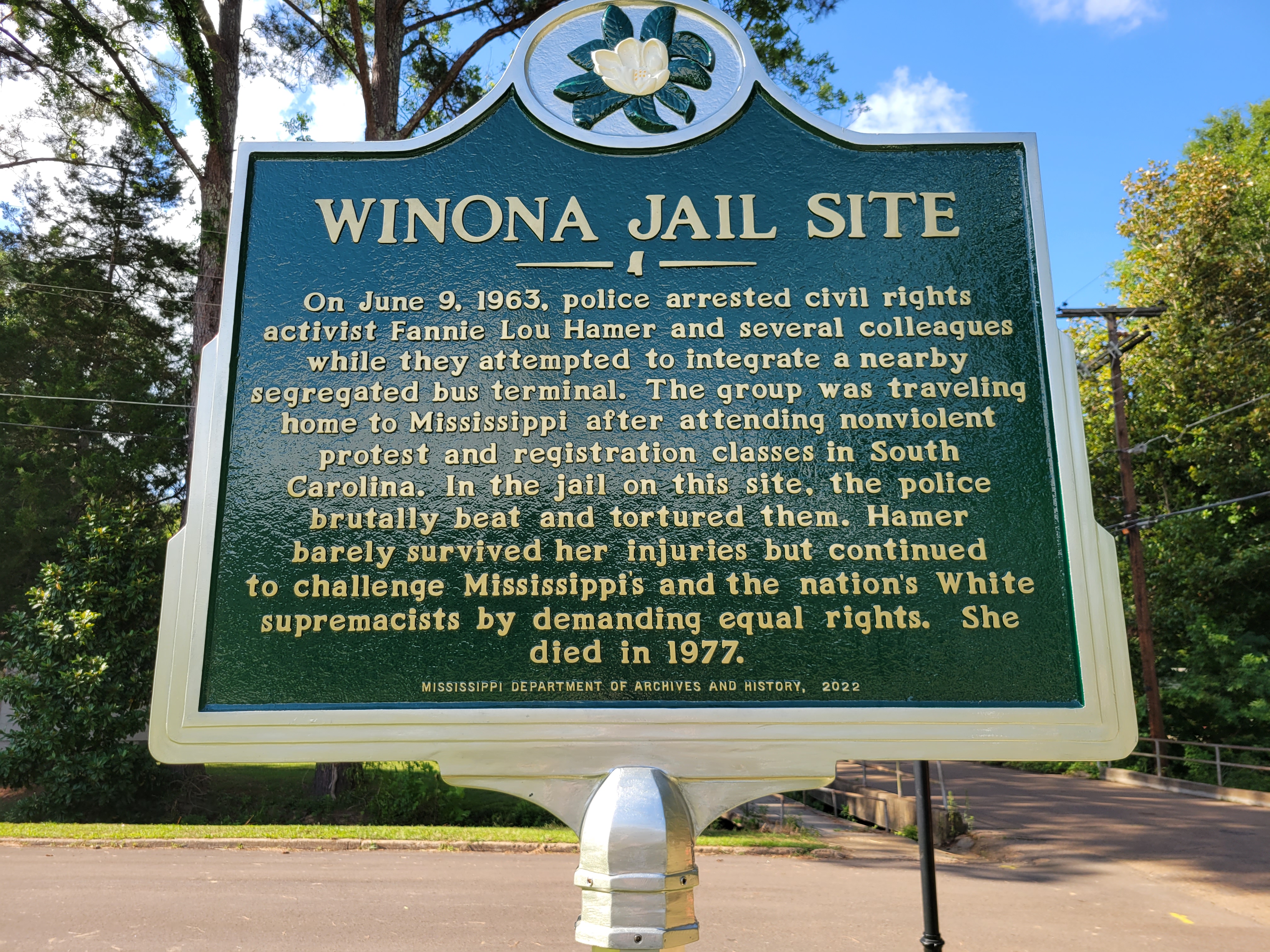 The first part of this day was dedicated to Curtis Flowers; the second half to Fannie Lou Hamer. This was by design. I came to Winona, Mississippi to spend some quality time with Curtis, and to attend the unveiling ceremony of a new plaque commemorating the day Ms. Hamer and her companions were savagely beaten in the Montgomery County Jail. The two are firmly connected, in my mind at least.