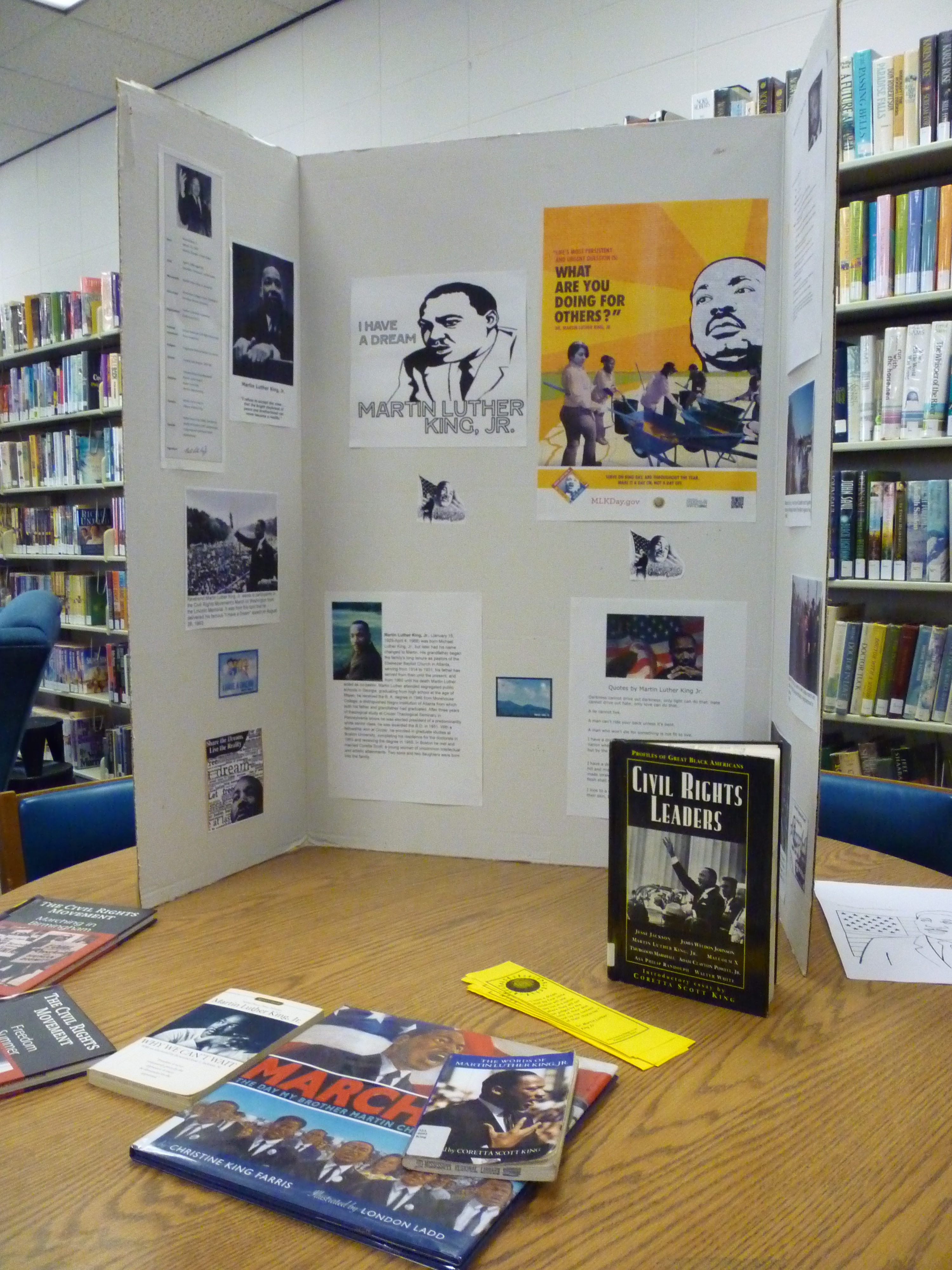 The next morning, Melanie and I returned to the library. A Civil Rights display featuring pictures of Martin Luther King Jr. greeted us as we entered the room. I was impressed. Mississippi is one of three southern states where citizens can choose to celebrate Martin Luther King Day or Robert E. Lee Day, whichever floats your boat. A Civil Rights display was above and beyond the call of civic duty.
